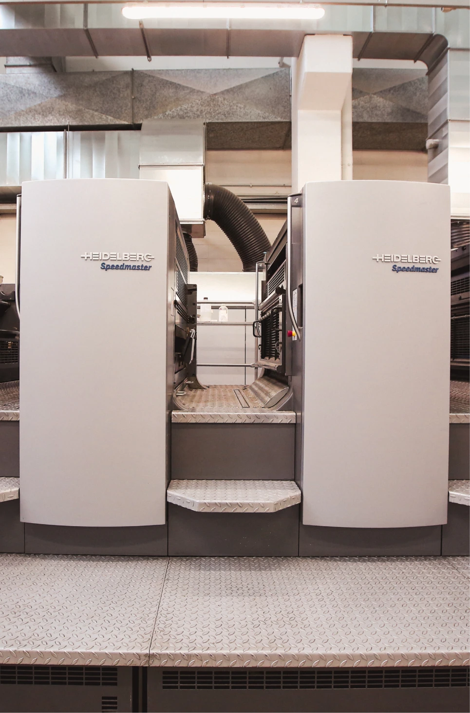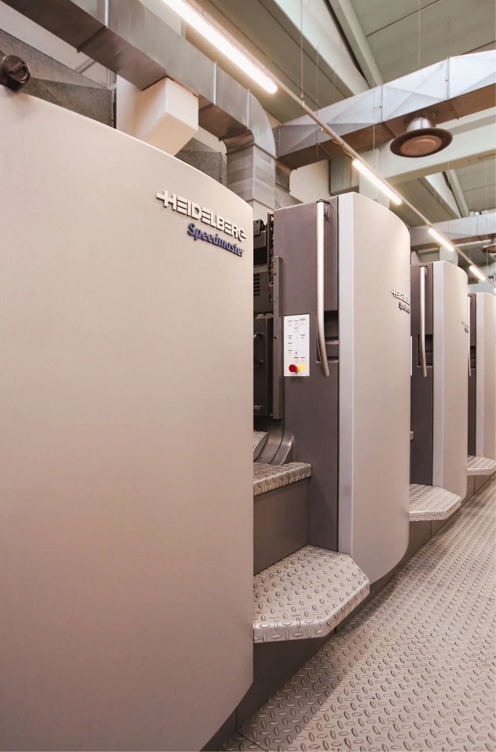 Il nostro reparto offset è equipaggiato con macchine piane fino al formato 70×100 a cinque colori con verniciatura in linea, in grado di lavorare anche su supporti cartonati e materiali ad alto spessore.