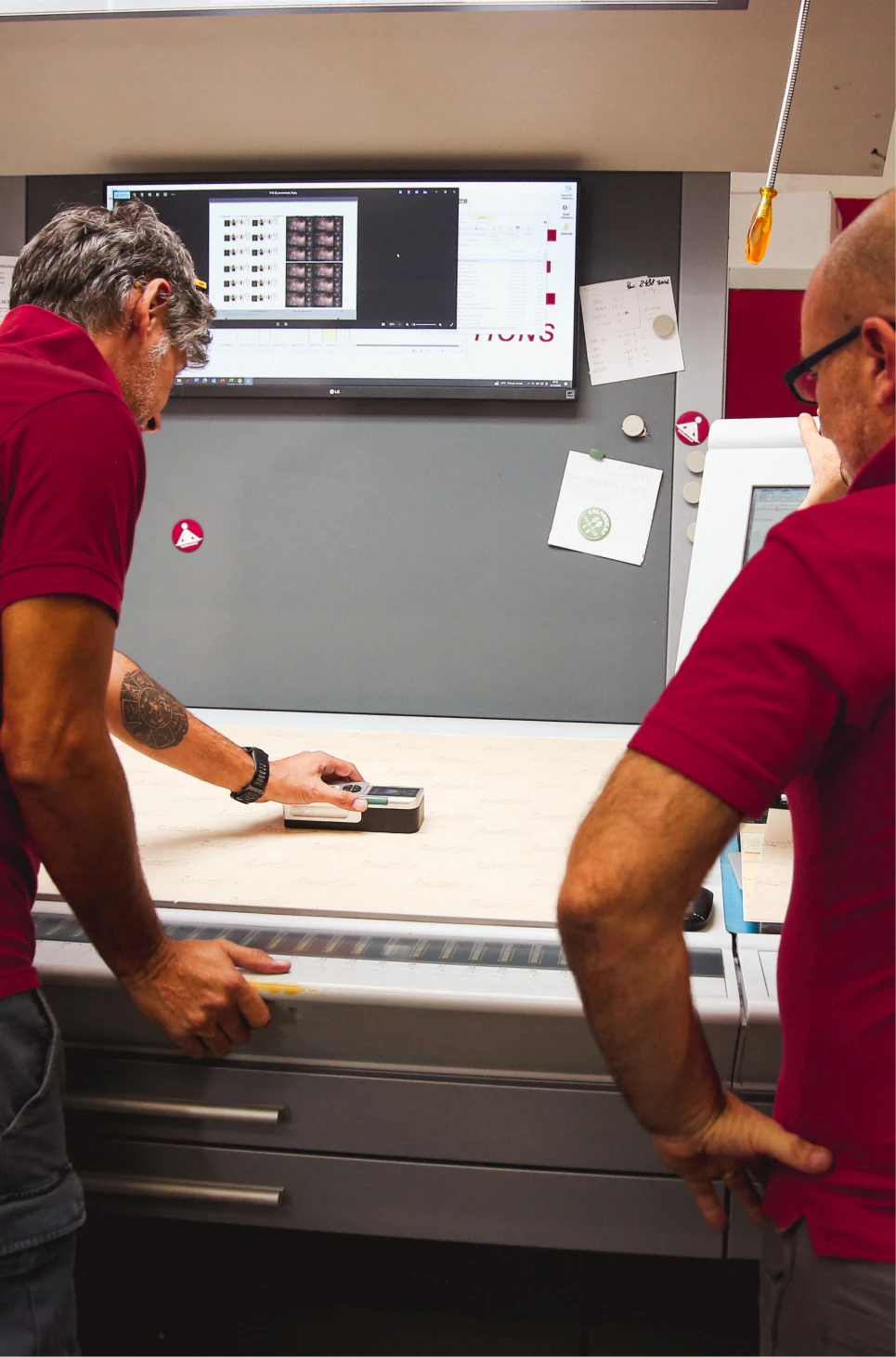 Grazie a sistemi evoluti di controllo colore e di registrazione, assicuriamo risultati perfettamente ripetibili nel tempo, in linea con gli standard del brand.